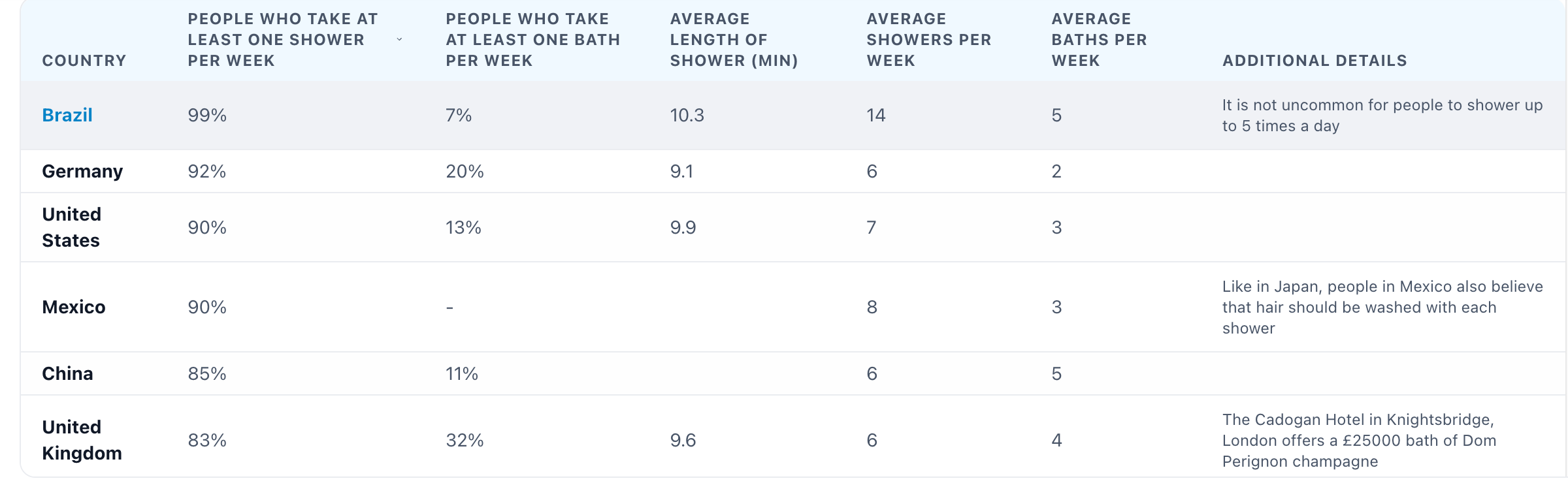 More bathing stats: https://www.soakology.co.uk/blog/bathing-habits-of-the-world/